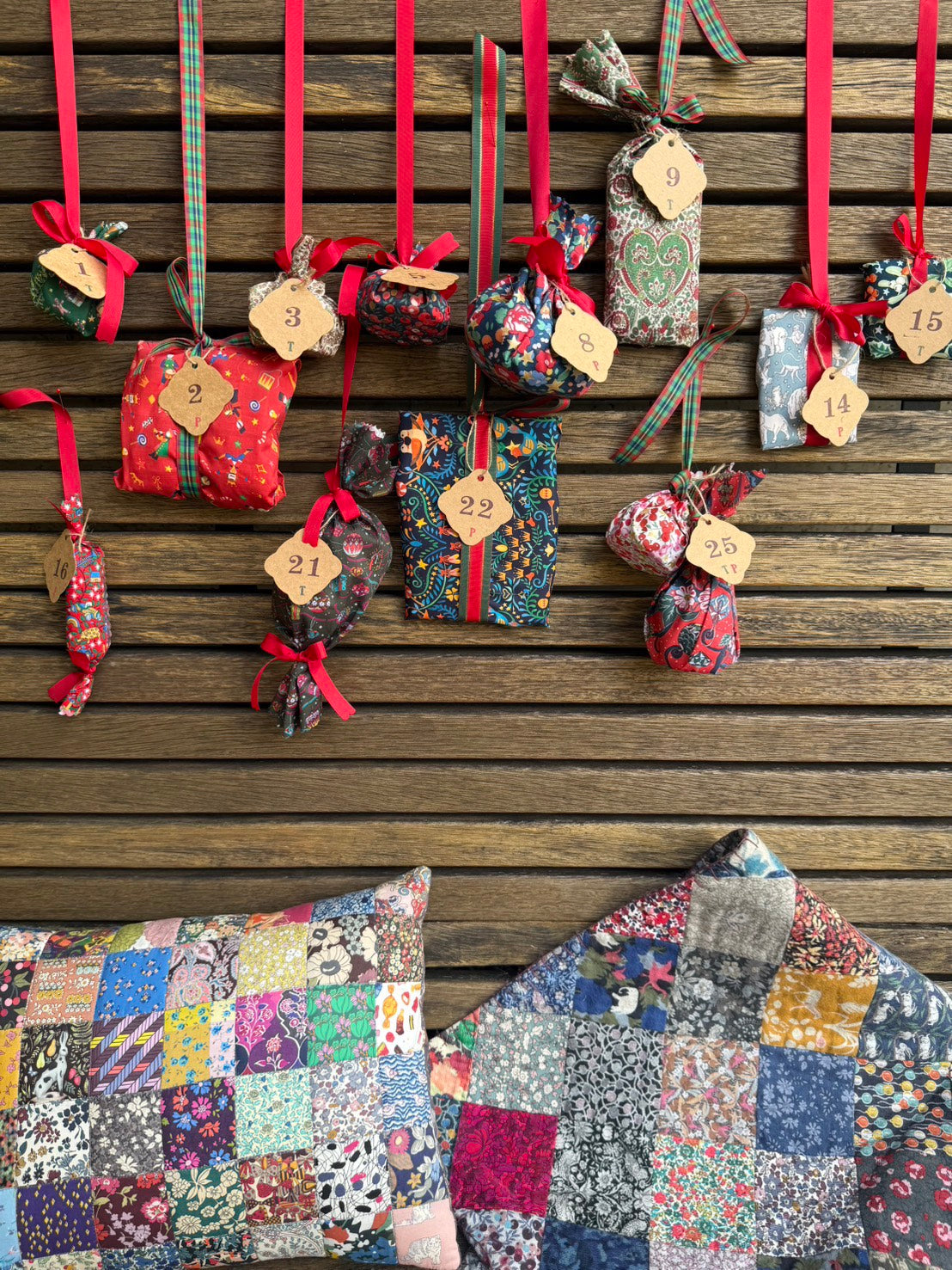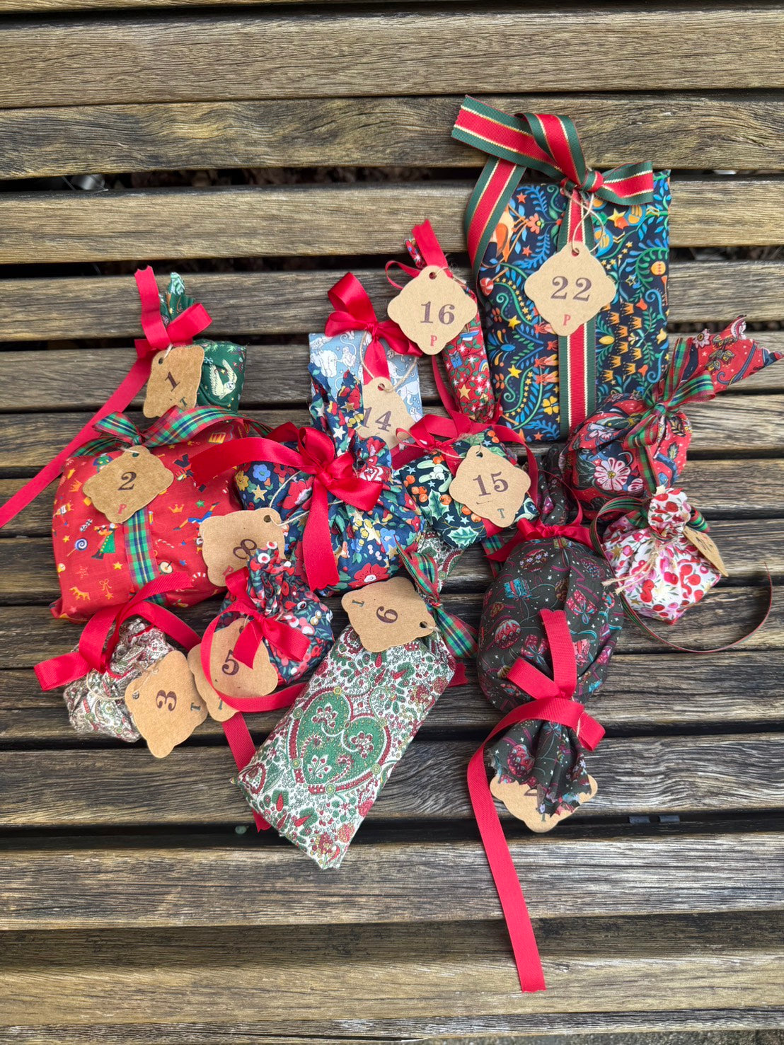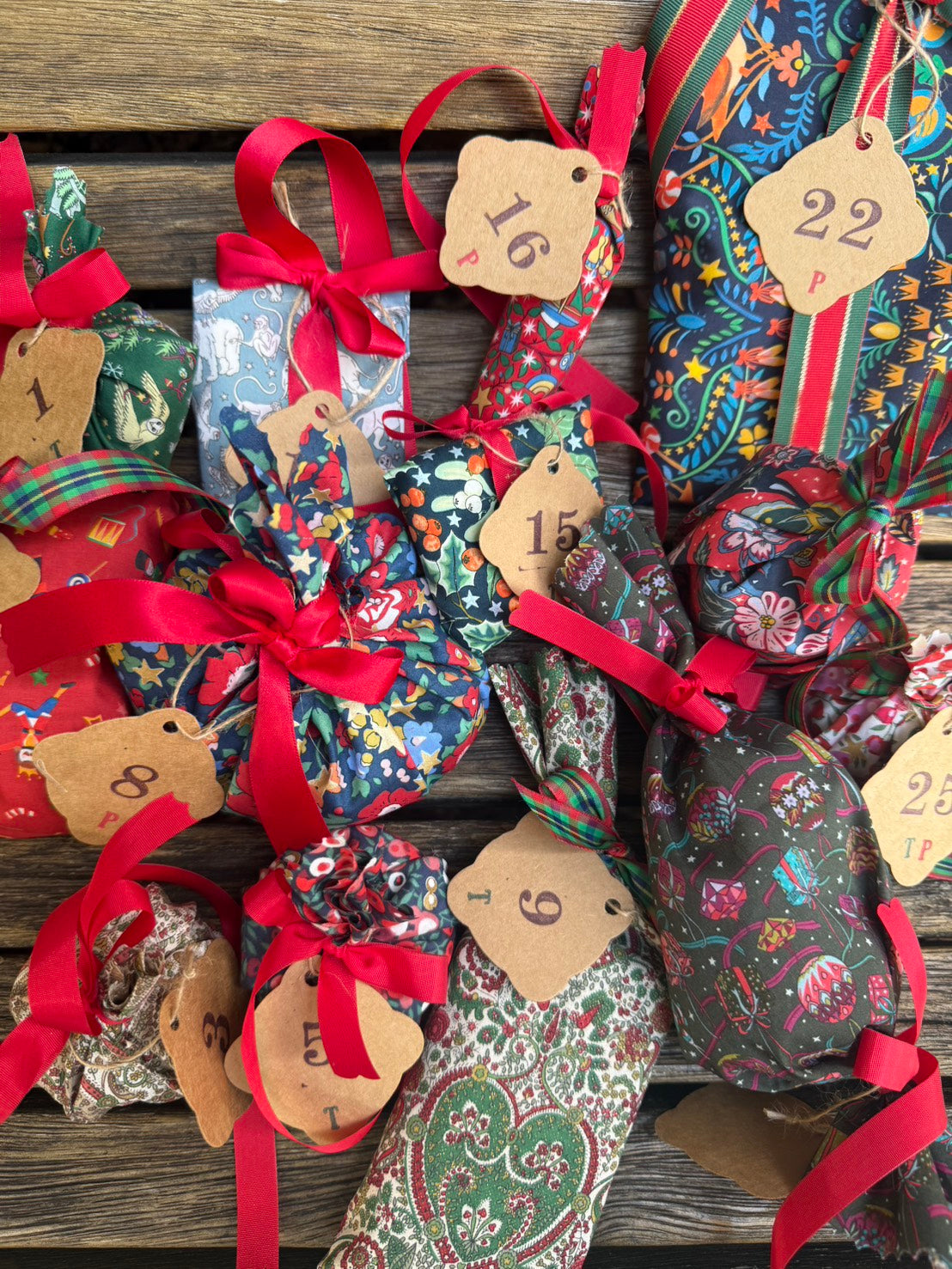 包みはすべてリバティ・ファブリックスのクリスマスプリント